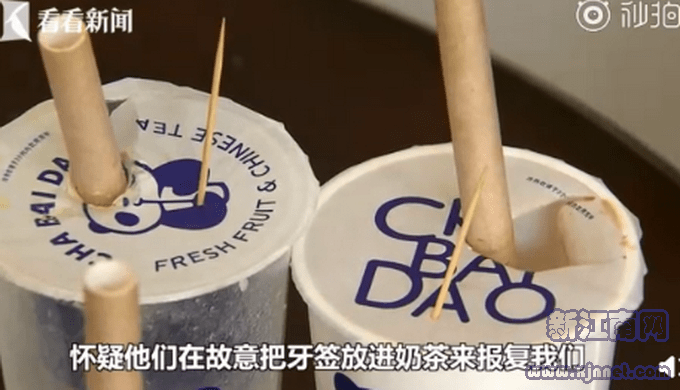 2021年4月1日,家住上海銀都路的龐女士在餓了么平臺買了3杯“茶百道”奶茶,裝奶茶的提袋未封口,結果每一杯都喝出1根牙簽。龐女士討要說法,商家卻表示,上述情況當天已非一起,店內(nèi)監(jiān)控顯示,系另一外送平臺騎手投放,店家也是受害者,應該由涉事騎手解決。目前,涉事騎手已被警方控制,相關案件正在調(diào)查中。