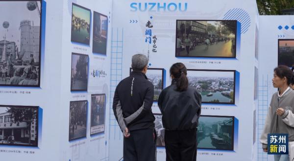 來(lái)到閶門城墻下,一組名為“老閶門城市記憶”的老照片攝影展吸引了不少老蘇州的目光。大家在照片前走走停停,駐足回憶,分享著自己記憶中的舊時(shí)蘇州景象。