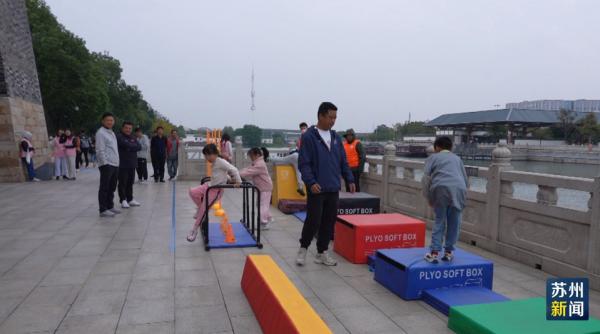在平門城墻下,近百組家庭陸續(xù)前來(lái)體驗(yàn)這一場(chǎng)“親子運(yùn)動(dòng)嘉年華”,丟沙包、投壺、體能跑等多項(xiàng)趣味運(yùn)動(dòng)項(xiàng)目讓孩子們玩得不亦樂乎。