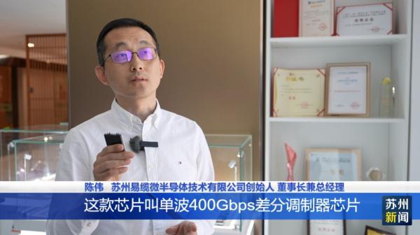 蘇州易纜微半導(dǎo)體技術(shù)有限公司創(chuàng)始人、董事長(zhǎng)兼總經(jīng)理陳偉介紹,這款芯片叫單波400Gbps差分調(diào)制器芯片,它可以實(shí)現(xiàn)非常高的傳輸速率和帶寬,可用于當(dāng)下人工智能數(shù)據(jù)中心的需求。