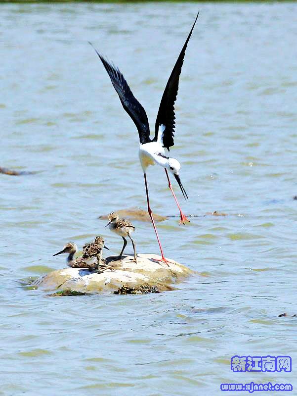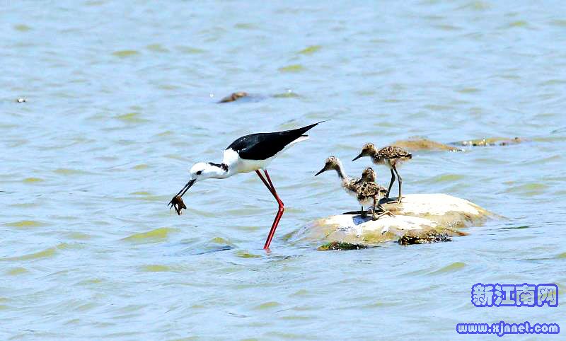 4只黑翅長腳鷸寶寶出生已12天,在鳥爸鳥媽的精心呵護(hù)下慢慢長大,已能根據(jù)鳥爸鳥媽的口令進(jìn)行遷移、游泳、隱蔽、覓食等行為?矗▲B爸爸還秀了一把快速捕捉小龍蝦的技藝,鳥寶寶們大開眼界。 蔣永慶 攝