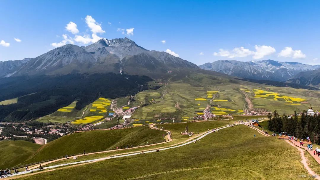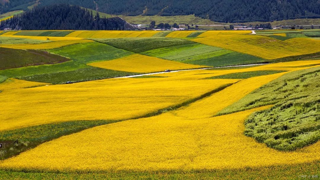 尤其是每逢7、8月,山腳下的油菜花盛開之時,在如詩如畫的高原背景中,金黃的色彩與潔白的雪山、錯落的村莊交相輝映。