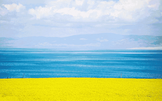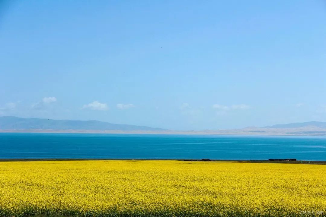 7月的到來,因為油菜花的盛開,更為青海湖添加了一份活潑生氣!環(huán)湖千畝的金黃色油菜花海,形成了一片片不同層次的黃色色塊,在高原深藍的天空下,鋪向天邊湖旁,無際無邊。