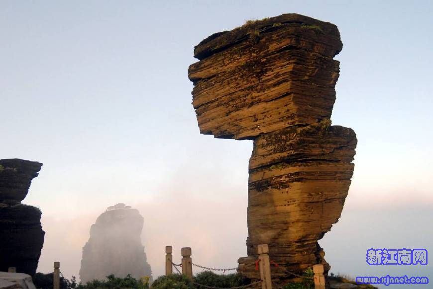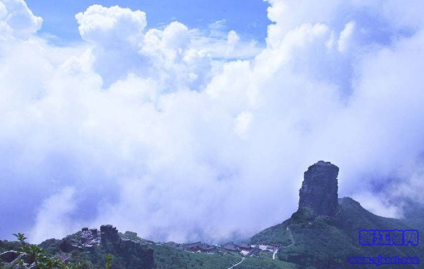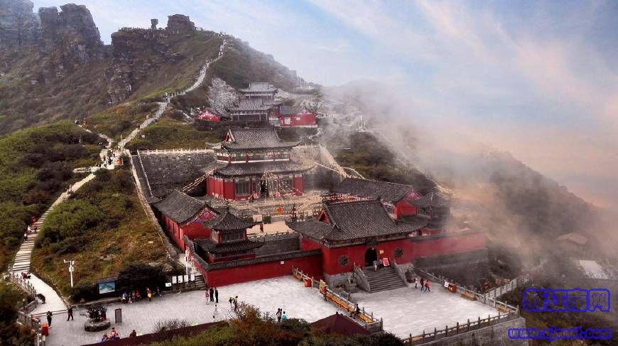 紅云金頂也是這里的標志之一,金頂在山頭拔地而起,高達一百多米,就像這座大山挺昂的頭顱,分外顯眼。但金頂?shù)淖铐敹擞忠环譃槎䴙閮蓚小山頭,中間還有天橋相連,四面全都是懸崖峭壁,往下就是看上去非常的險峻。每個小山頭各建有一座寺廟,讓人頗有種走進了仙境的感覺。上去金頂?shù)耐局羞有觀音洞、定心水,處處都是美景奇觀。