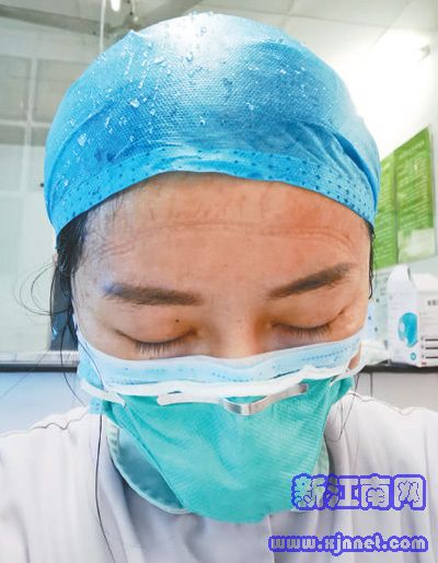 武警湖北總隊醫(yī)院衛(wèi)生防疫科“90后”護士肖瑞,堅守在防疫一線已有20多天。圖為忙碌了一天的肖瑞,走出病房脫下隔離衣,豆大的汗珠掛滿一次性工作帽,額頭上的勒痕清晰可見。吳 君 王云可攝影報道
